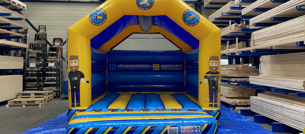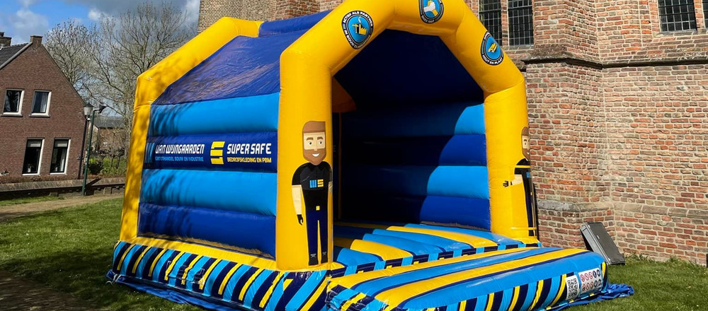 We zijn in het bezit van een heus van Wijngaarden Super Safe springkussen!! We hebben dit springkussen aangeschaft om ter beschikking te stellen aan goede doelen zoals actiedagen van kerken, verenigingen enz. in de regio waarin veel van onze relaties actief zijn. Uiteraard onder voorwaarde dat er netjes mee wordt omgegaan en de veiligheidsregels worden nageleefd. Wij zijn niet verantwoordelijk voor schade of ongevallen door gebruik van dit springkussen. Het springkussen zelf is gecertificeerd volgens de Europese normen die gelden voor dit soort attributen. We hebben er maar 1, dus gereserveerd is gereserveerd!